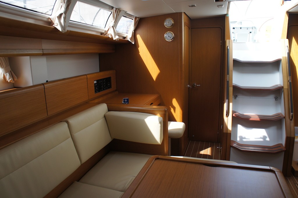 E’ un sistema integrato il cui brevetto è un’ esclusiva del Gruppo Jeannea/Beneteau. Tecnicamente e’ un’ interfaccia tra manetta di propulsione/sail drive rotante a 360 gradi/elica di prua, il tutto gestito semplicemente attraverso un joystick che permette all’ imbarcazione di manovrare anche da ferma su se stessa in tutte le direzioni volute. Un’ innovazione che cambia la vita di tutti gli skipper, in quanto si può ormeggiare in ogni condizione ed ogni spazio di manovra, come fosse un gioco per ragazzi. Elegante e potente, il Sun Odyssey 49i è una vera barca d’altura. ??Al timone è facile puntare la prua sulla rotta da seguire. Ai verricelli, potete controllare le vele con precisione. Questa grande barca a vela moderna di 49’, facilmente manovrabile anche con equipaggio ridotto, è stata concepita per andare più lontano e più veloce offrendo massimo comfort in mare e in porto.??Il segreto di una crociera ben riuscita sta nei bei momenti vissuti assieme. Grande cucina, ampia dinette, bel tavolo da carteggio, atmosfera moderna, luminosità, ventilazione permanente, l’interno del Sun Odyssey 49i offre ampi spazi vivibili e massima comodità.